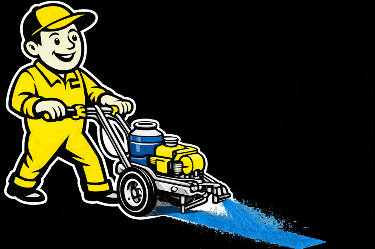 We use professional-grade traffic marking paint designed for commercial lots in cold-weather climates.
